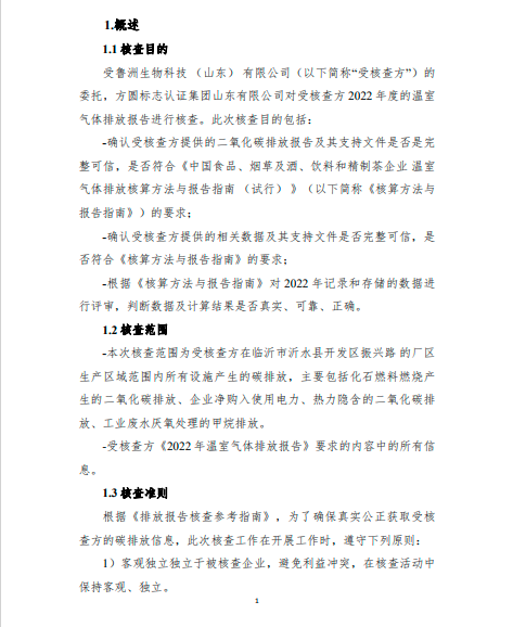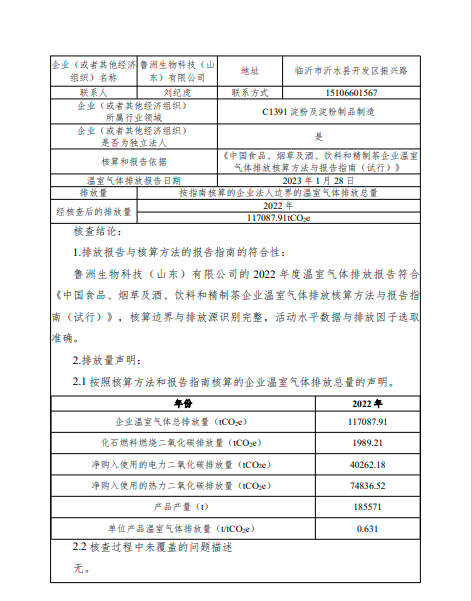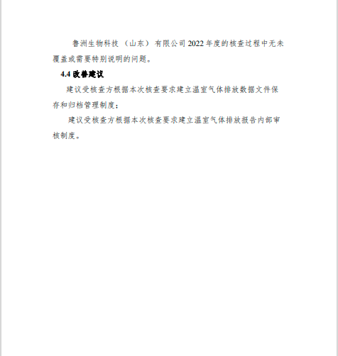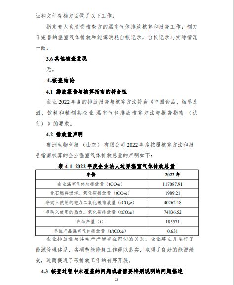 鲁洲生物科技(山东)有限公司2022年度温室气体排放核查报告