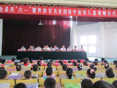 为帮助农村贫困留守流动儿童继续学业,努力营造关爱贫困儿童健康发展的良好环境,2011年5月31日,沂水县妇联在第三实验小学举行了全县庆“六一”暨资助百名贫困留守流动儿童捐赠仪式, 仪式现场向30名留守流动儿童代表各发放500元资助金、书包及食品。这次活动全县有170余名贫困留守流动儿童接受爱心人士资助,资助金额达10万余元。竞技宝电竞官网登录一次就结对资助了102名贫困留守流动儿童。